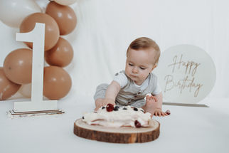 Beim Cake-Smash-Shooting werden ausschließlich Bilder von eurem Kind gemacht, wobei der Fokus zunächst auf dem Kind allein liegt, ohne die Geburtstagstorte.